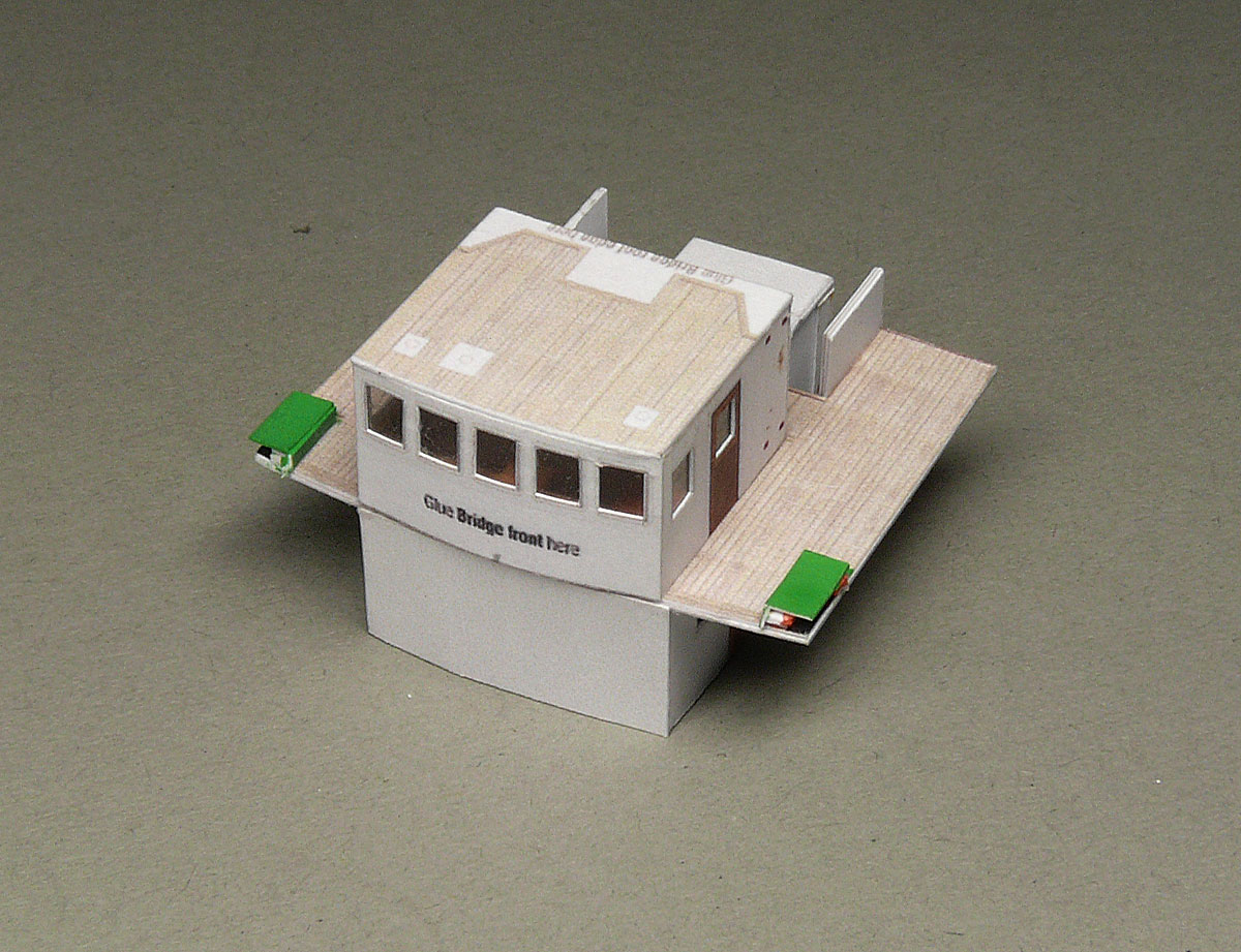Leider ist in meinem Falle nicht mehr viel vom Innenleben der Brücke zu sehen; deshalb habe ich auch auf Kompass, Steuerrad und diverse Kleinteile verzichtet – Lars wird da sicherlich anders vorgehen?! …