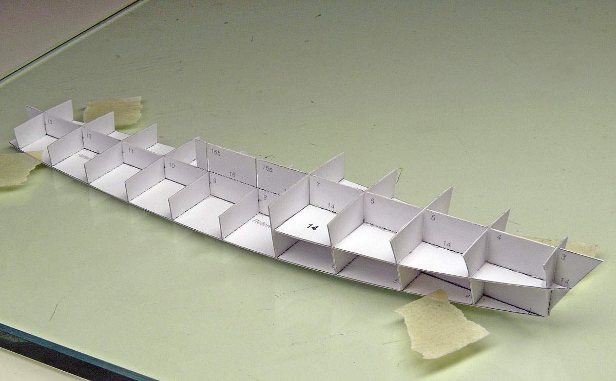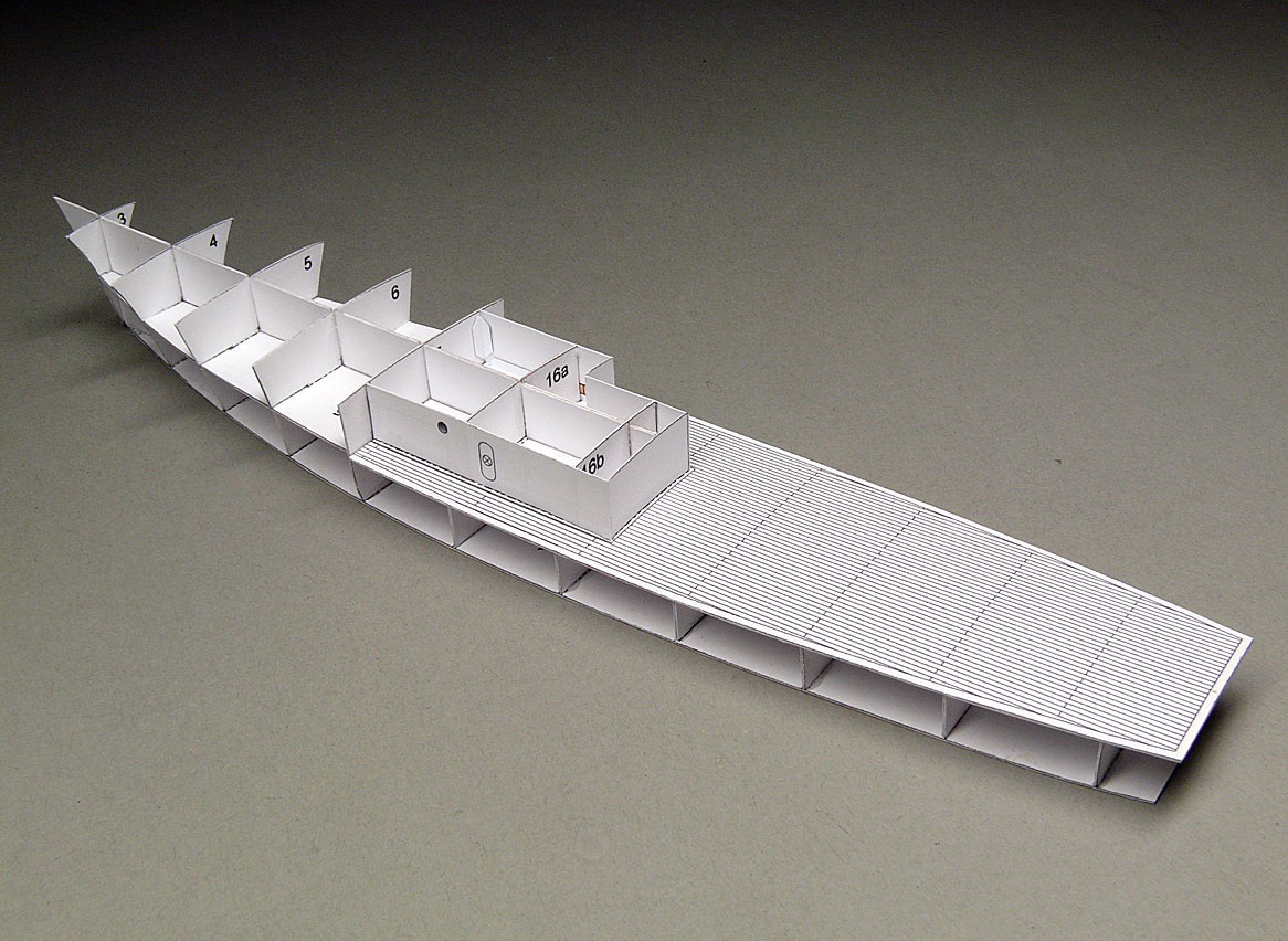 … als nächstes wurden die Aufbauwände auf dem Hauptdeck gezeichnet und entsprechend aufgeklebt ..