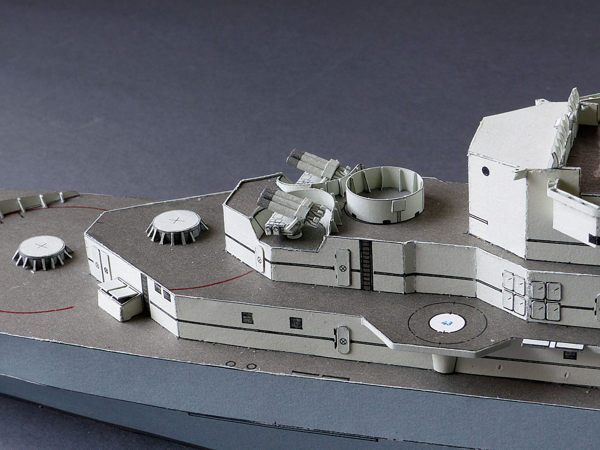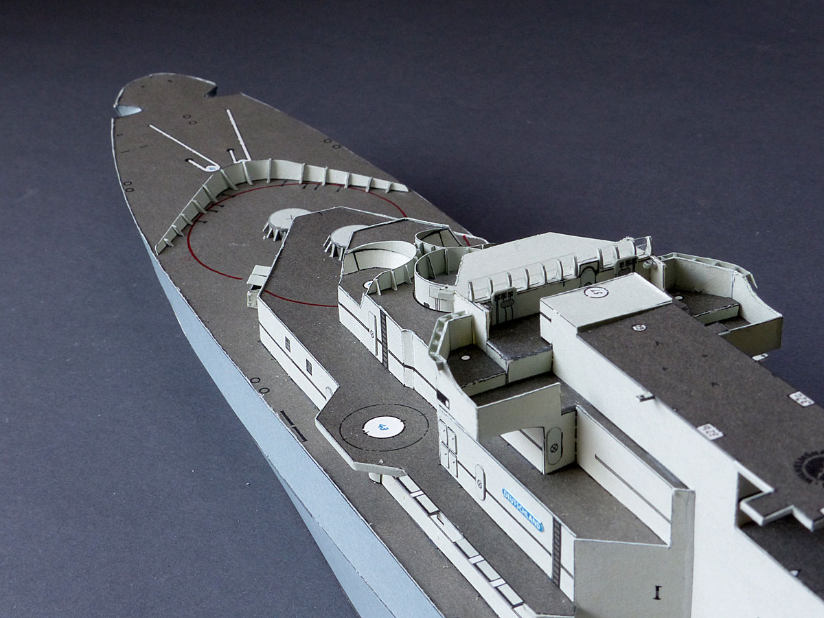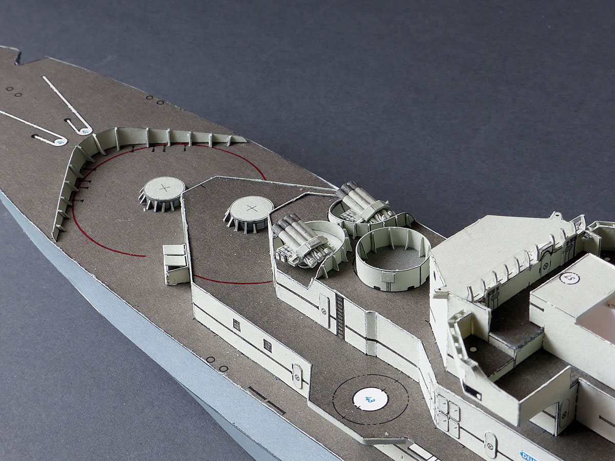 Die roten Linien für die Schwenkbereiche der 100-mm-Geschütze und die Sockel waren ebenso an der Reihe wie die Blende für das M4/2 Zielradar selbiger Waffen.