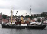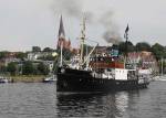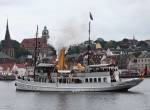 Wie alle 2 Jahre üblich fand auch in diesem Jahr wieder die obige Veranstaltung statt; während es sich früher tatsächlich um Dampf rundum Flensburg handelte, war dieses Jahr „lediglich“ Dampfertreffen mit Fress- und Saufbuden am Hafen angesagt. Schade eigentlich; der Veranstalter hatte wohl mehr den Schwerpunkt auf die „kulinarischen“ Dinge gelegt; und das Wetter spielte auch nicht so richtig mit.