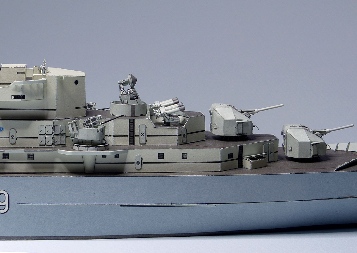Wer diesen Bausatz damals erworben hat, kann mich gerne kontaktieren – es besteht die Möglichkeit eines Bogens mit entfärbten Bauteilen für die Geschütze, welchen man dann als PDF-Datei auf Tonpapier ausdrucken kann.