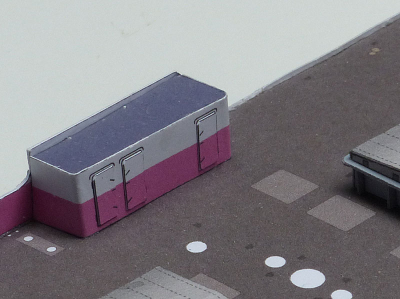 Ich wurde gebeten, noch ein paar Zeilen zu den achteren Deckshäusern zu schreiben; der Aufbau an sich ist nun wirklich nicht herausfordernd. Das Deck wird so eingesetzt, daß es von der Wand umschlossen und oben einen Tuck tiefer sitzt um einen kleinen Anschlag für die Reling, die sich nur im der See zugewandten Teil befindet, zu bilden.