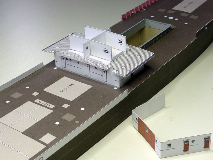 Die Rückseite wird später mit einem, mehrere Decks übergreifenden, Bauteil verschlossen. Alles keine weltbewegenden Vorgänge – eher ein Abarbeiten.