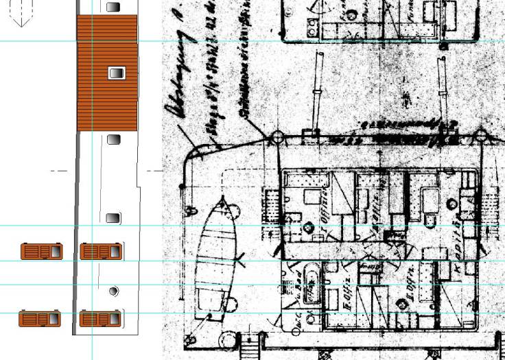 Habe mir diesbezüglich mal Fotos von Schiffen gleicher Größe und Zeitraum angesehen und sowohl TRAVE, LAHN, SCHWABEN haben ein gleiches Mal an Holz an gleicher Stelle – also auch hier Konsenz.