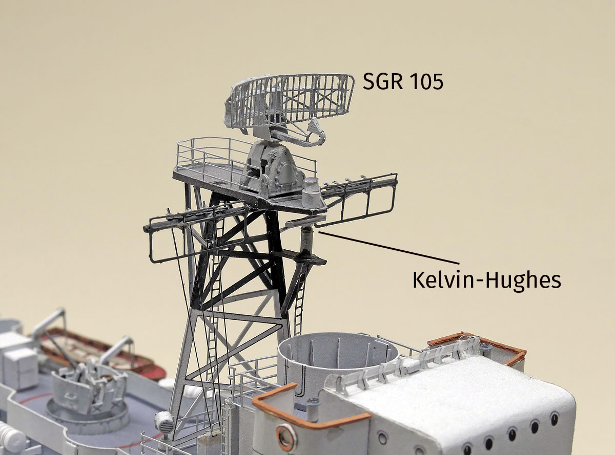 Auf den Schulschiffen und parallel auf den Einheiten des 55er Bauprogramms wurde auf bewaffneten Einheiten das See- und Luftraumüberwachungsradar SGR 103/DA02 – später SGR 105/DA04 – eingebaut. Die Geräte kamen von Hollandse Signaalapparaten, ein Hersteller, welcher über Jahre der Standardausrüster für solche Produkte war.