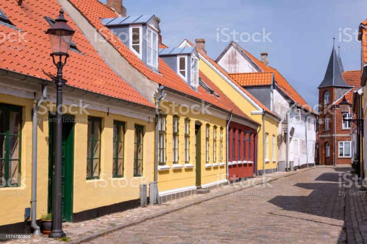 Eine ähnliche Zeile findet sich in Ribe, Dänemarks ältester Stadt in Dänemark.