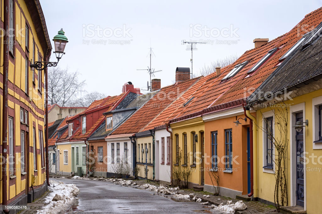 Diese Häuserzeile befindet sich in Ystad/Schweden. Ein Ort, der nicht erst seit Kommissar Wallander bekannt ist.