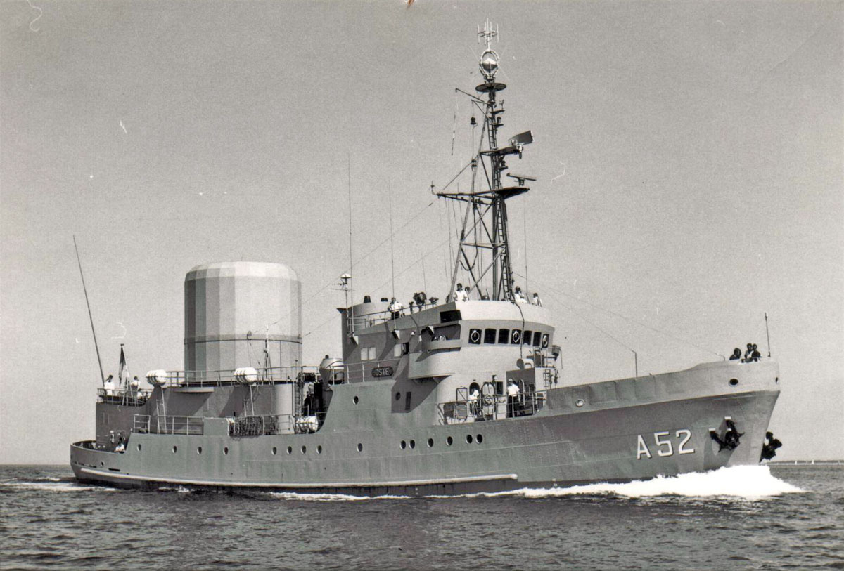 Hier ein Foto vom letzten Bauzustand der OSTE; geänderte Brücke, Dreibein-Mast, und Radom nicht mehr so ganz „weiblich“.