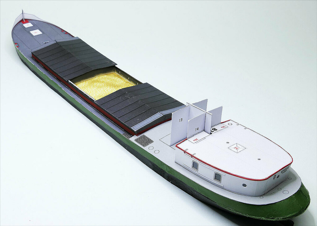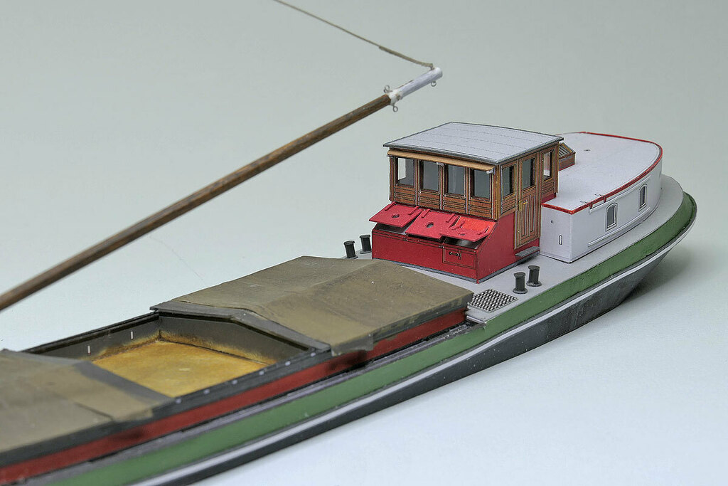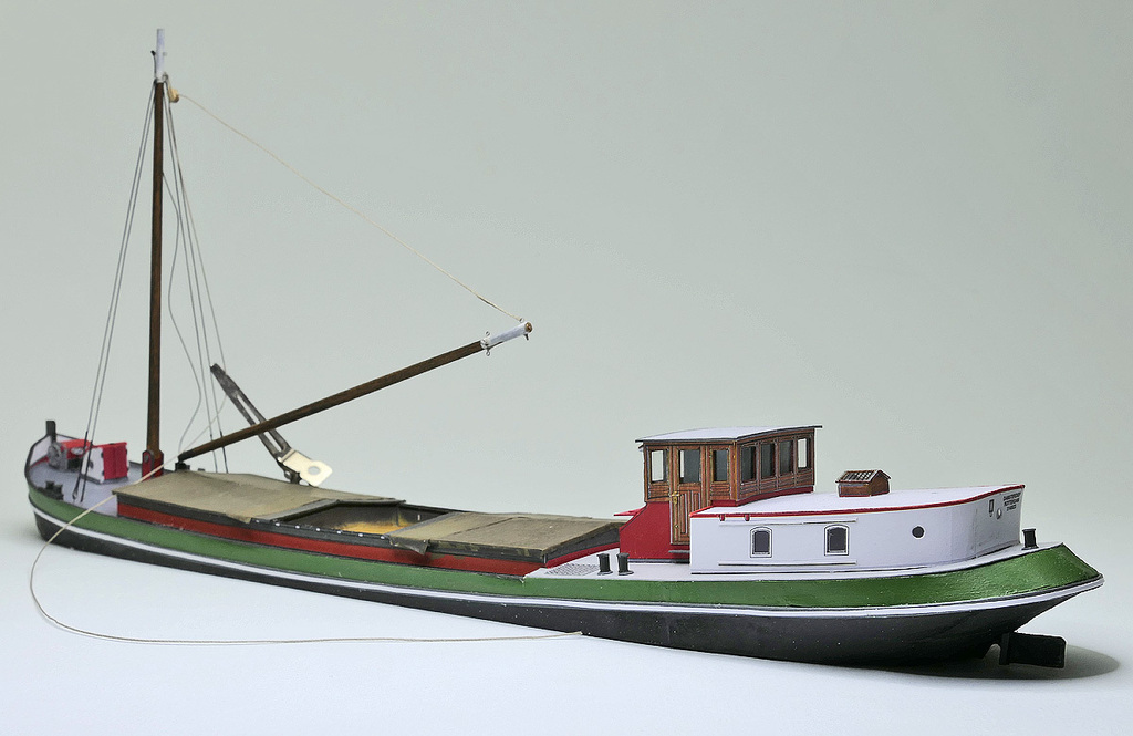 Wasser ist seither ein gern genommener Transportweg; daß hat sich bis in die heutige Zeit nicht geändert; ich fand beim Aufräumen und Entsorgen einen Modellbaubogen, der ein kleines Binnenschiff erlaubte, welches in ganz Nordeuropa unterwegs und bis heute noch fährt .. jetzt allerdings im Privatbesitz. Damit es in meinen Sielhafen 1:87 paßt, hat dieses Modell genau die richtigen Maße.