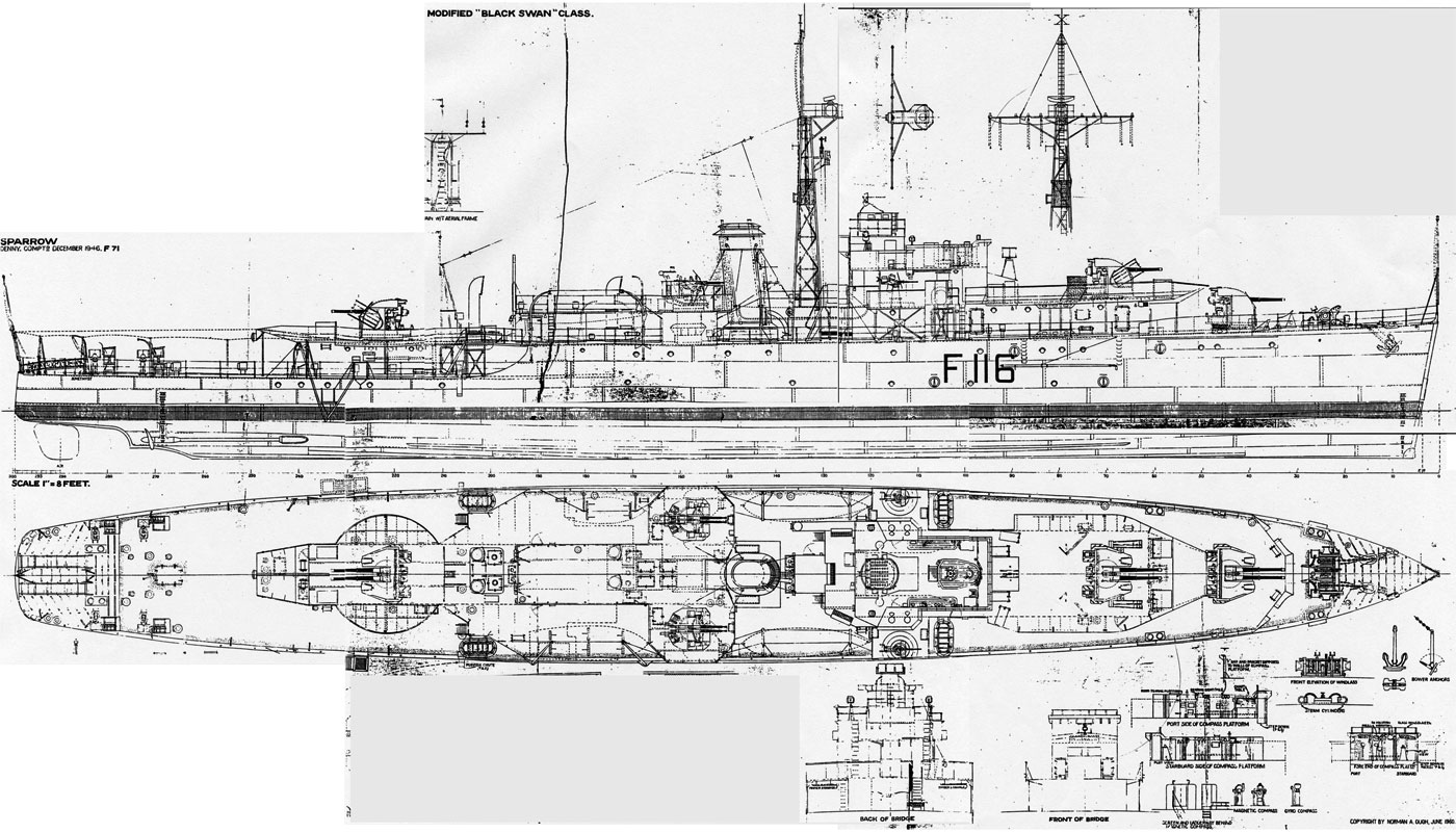 Freunde steuerten Fotos von den Modellen der HIPPER und GRAF SPEE aus der Sammlung in Mürwik bei; ich habe versucht, den letzen Bauzustand darzustellen, soweit möglich. Alle 4 Fregatten der Black-Swan-Klasse wurden mehrfachen Umbauten unterzogen. Dieses auf einen einzugrenzen ist mir nicht möglich.
