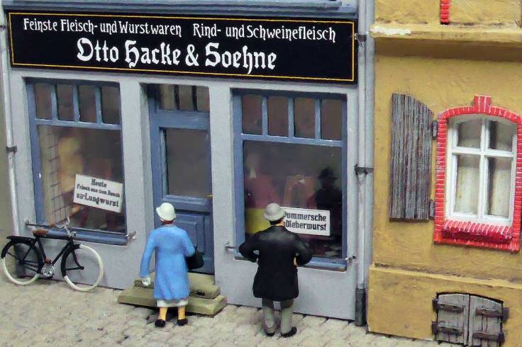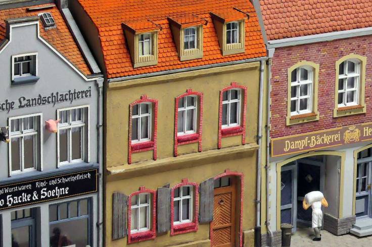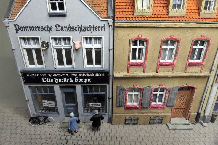 Das Gebäude der Landschlachterei war eigentlich als Apotheke vorgesehen und das mittlere Wohnhaus hatte eine Etage mehr; na und die Bäckerei ist ja bereits vorgestellt worden.