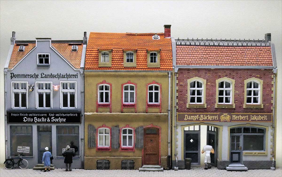 Das Gebäude der Landschlachterei war eigentlich als Apotheke vorgesehen und das mittlere Wohnhaus hatte eine Etage mehr; na und die Bäckerei ist ja bereits vorgestellt worden.